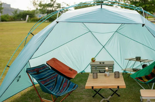 床面のない大型テントで、リビングスペースや日よけ用として使われます。通気性に優れ、夏場に最適です。サイドを開放してタープのように使用できるモデルもあります。