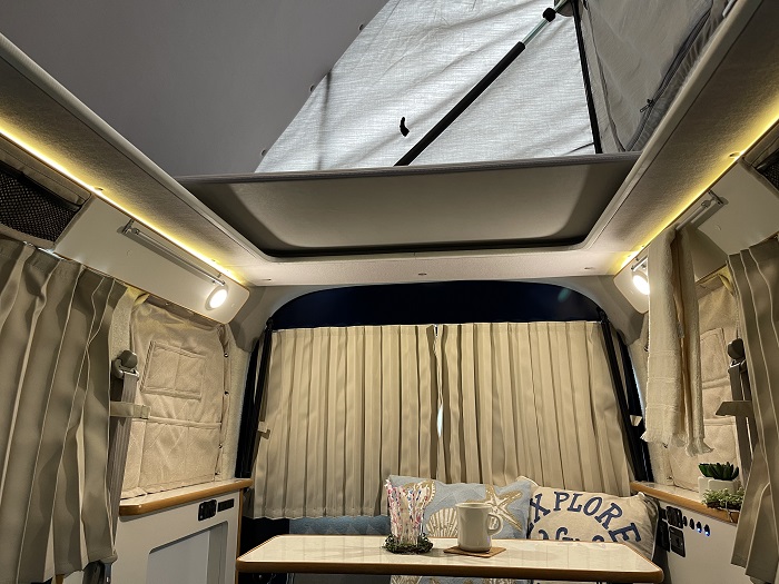 横開きPOPUPルーフ搭載で広い居住スペース、オリジナルショックによる乗り心地の改善を行った一台です。