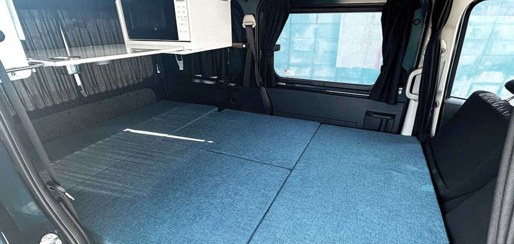 収納環境はもちろんのこと、ご家族での旅行やパートナーとのバンライフ、愛犬との旅行などゆったり余裕のある空間を楽しんでいただけます。