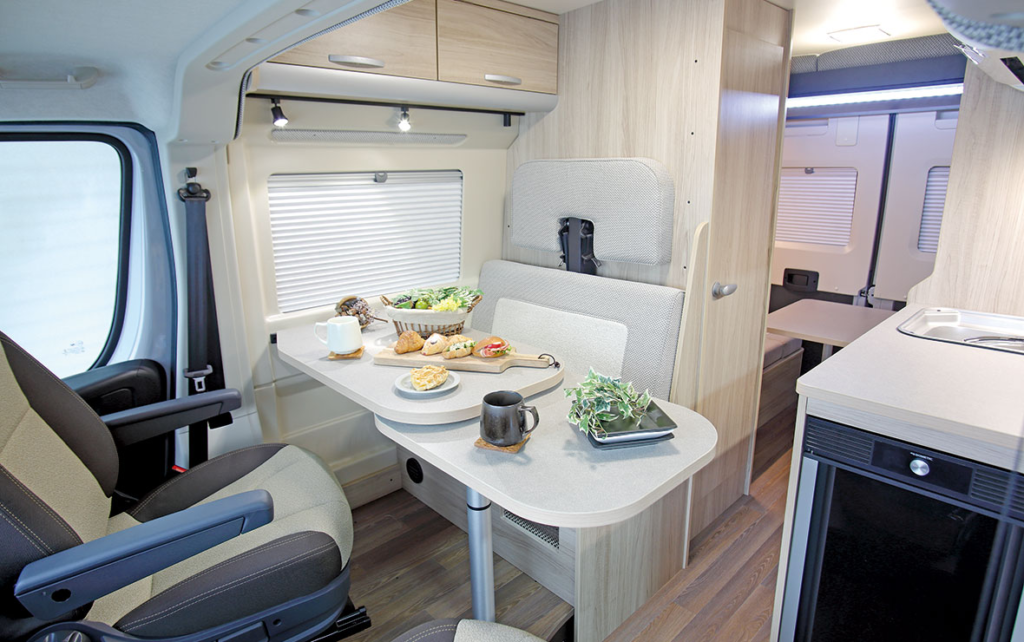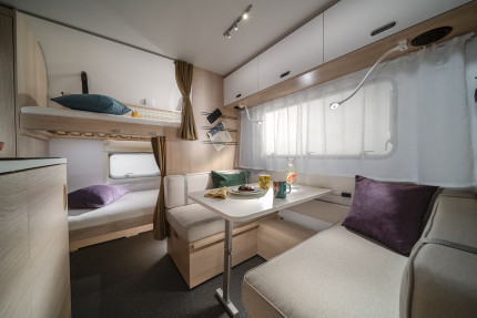 充実装備と前向き4人座席。オプションで2段ベットが可能なモデルです。