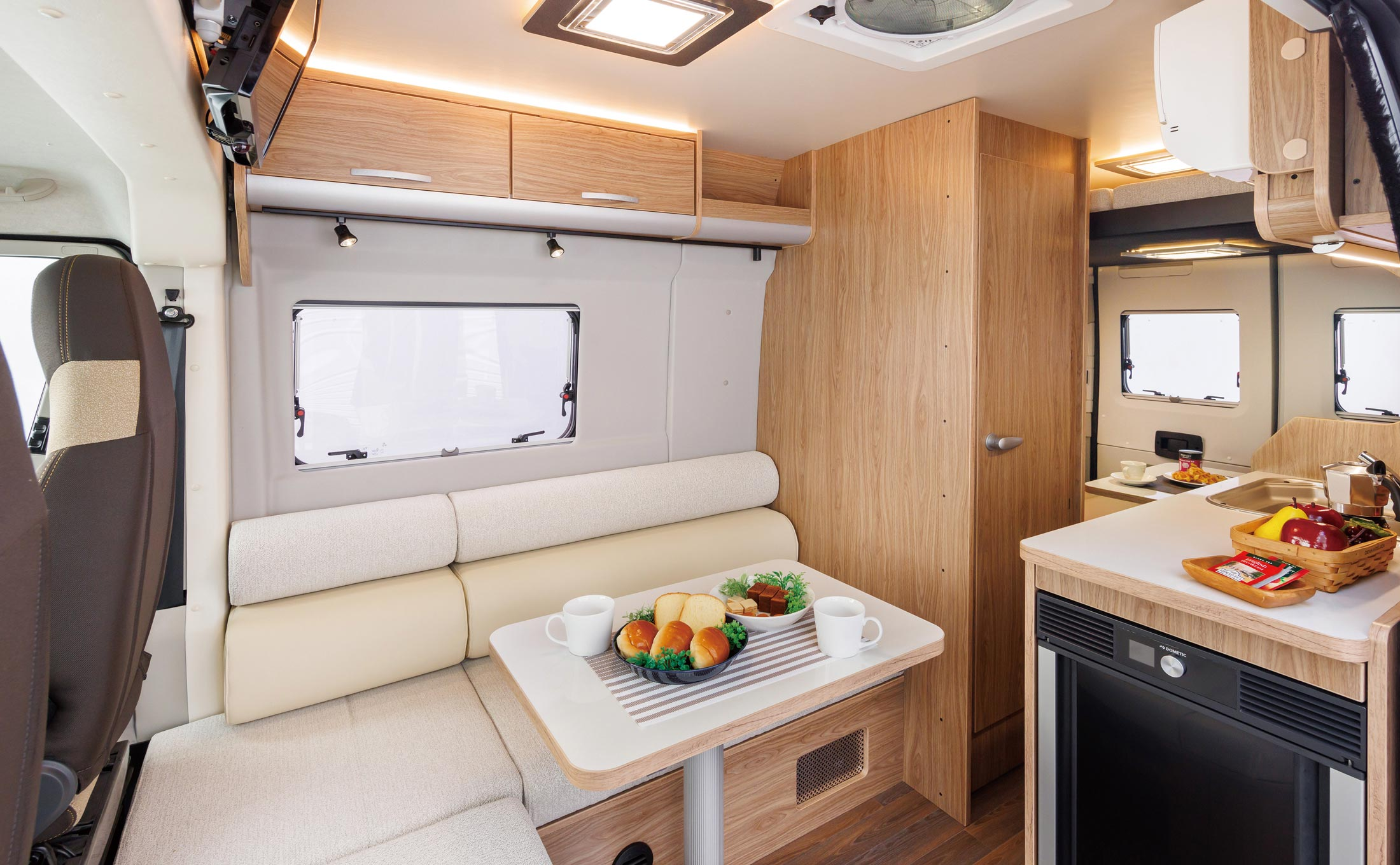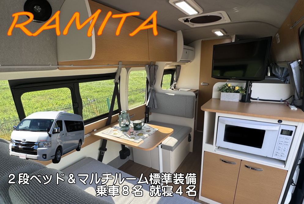 シリーズの多人数仕様モデル。全幅1,740mmのスリムボディを維持しつつ、乗車定員8名・就寝定員6名を実現。リアエントランスと広いダイネットレイアウトが特徴。