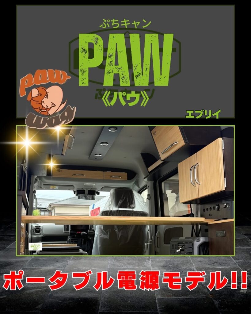 エブリイワゴンをベースとした軽キャン。ワゴン(軽乗用車)がベースなので普段使いでも活躍するマルチユースな軽車中泊カーです。