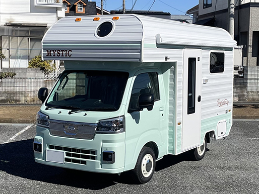 軽トラックをベースにした新しい形の車泊を提案。自分らしさを創造できる一台です。