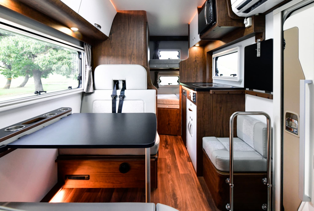 全長4.4mのコンパクトボディに、広々とした車内空間と実用的なキッチン・収納設備を搭載。ポップアップルーフ仕様なら就寝スペースも拡張され、夫婦や小家族での旅行や車中泊にも最適です。