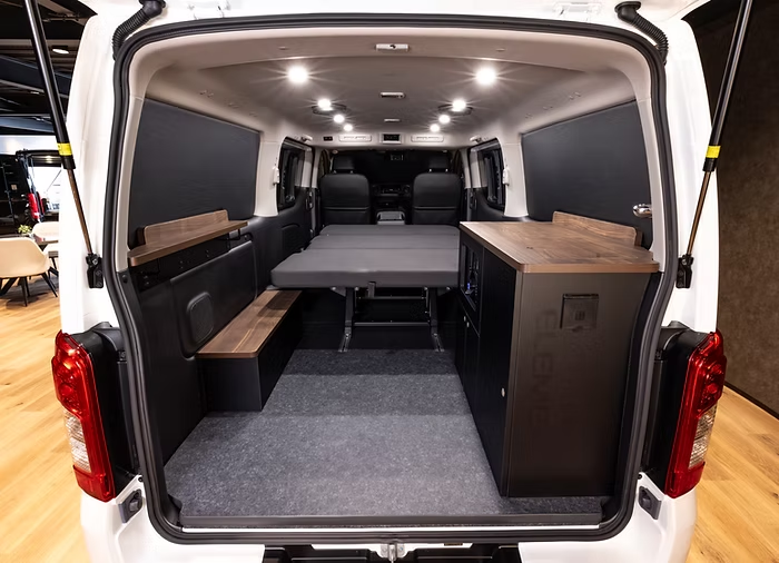 人気のダイネットに、防水マルチルームをプラス。NV350ベースの特別な一台です。