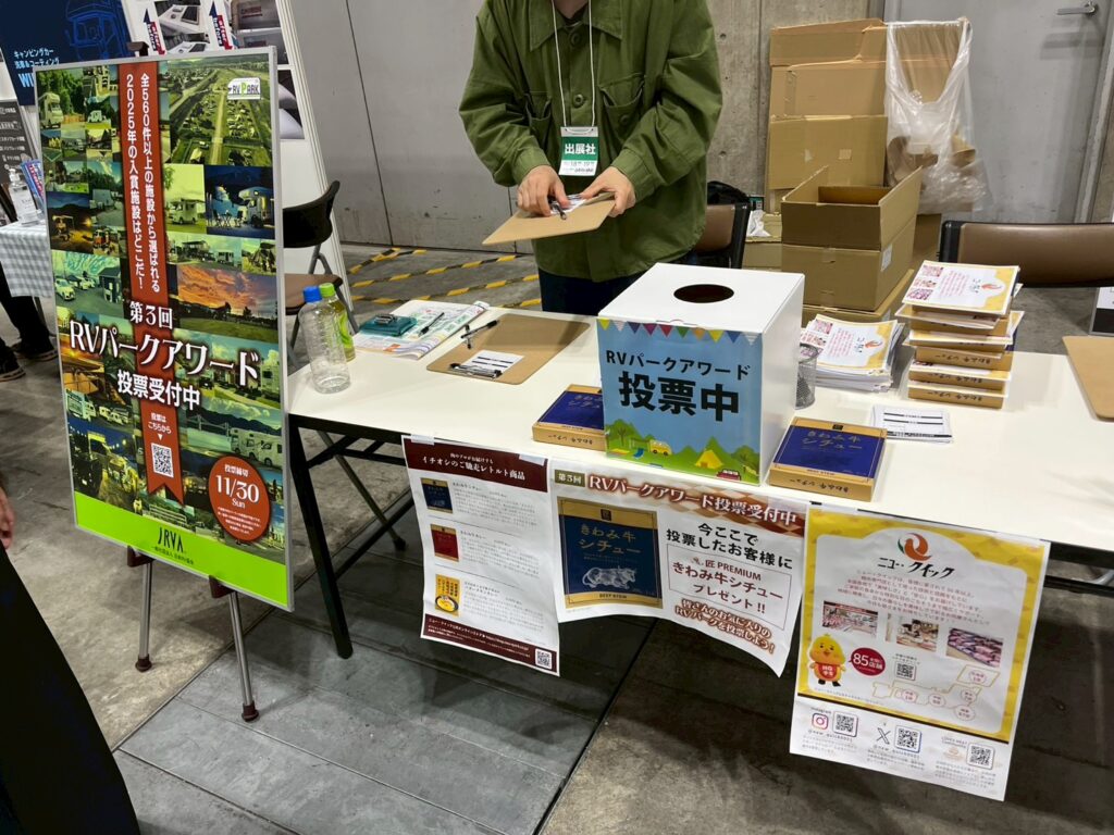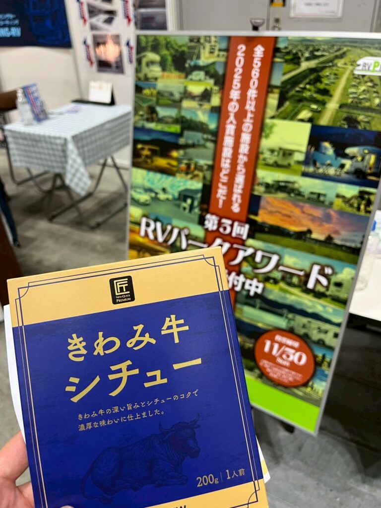 会場では「第3回RVパークアワード」の投票を受付中です。会場で投票してくれた方にはもれなく、「きわみ牛シチュー」がもらえます。数に限りがあるようなのでお早めにご参加ください。