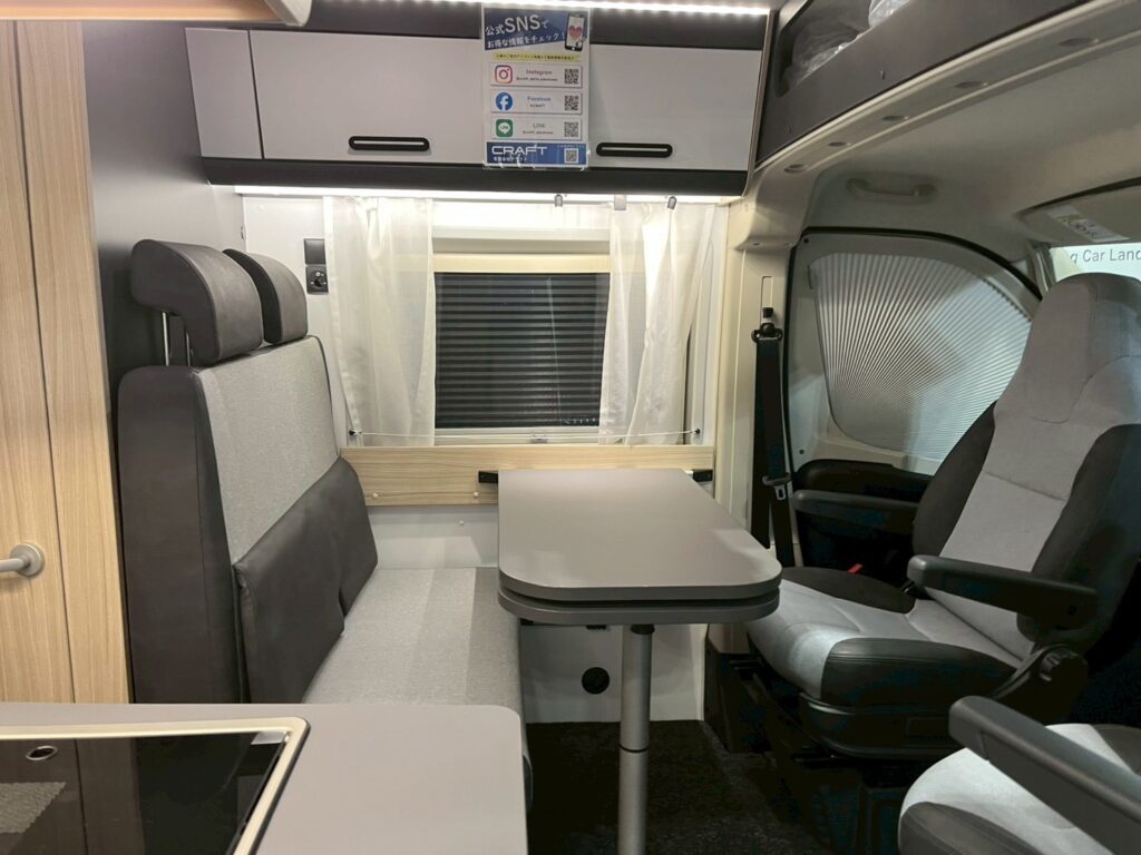 Darwinシリーズの最上級モデルです。最大の特徴としては、「余裕のある広々空間」です。ゆとりあるダイネットスペースにゆとりのあるベッドスペース。車の中とは感じさせないような快適な空間が広がっています。