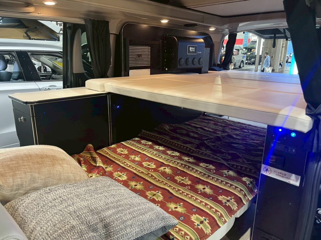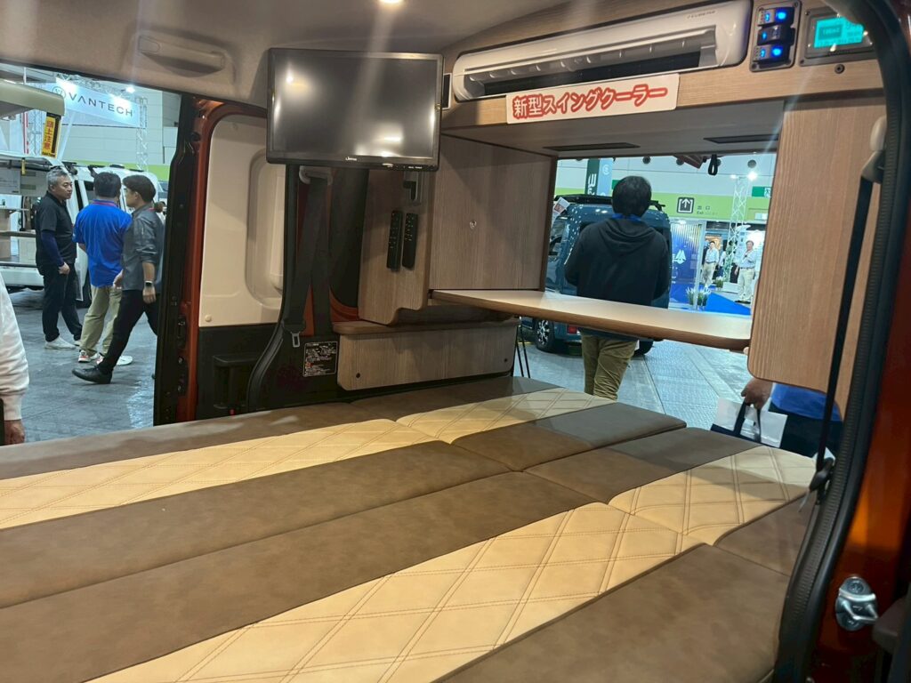 シンプルながら実用性の高い内装を採用し、コンパクトなスイングクーラーを標準搭載。快適な車中泊が可能な1台です。普段使いもしやすく、ファーストカーとしても活躍できます。会場では限定セールも実施されているので、PAPA BUILDブースで実車をチェックしてみてください。