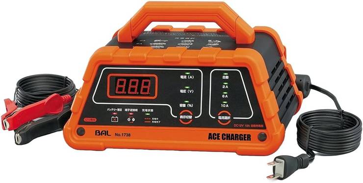 車からバッテリーを外し、プラスとマイナスを正しく接続してから充電を開始します。充電時間はおよそ8〜12時間が目安で、満充電まで待つことが大切です。