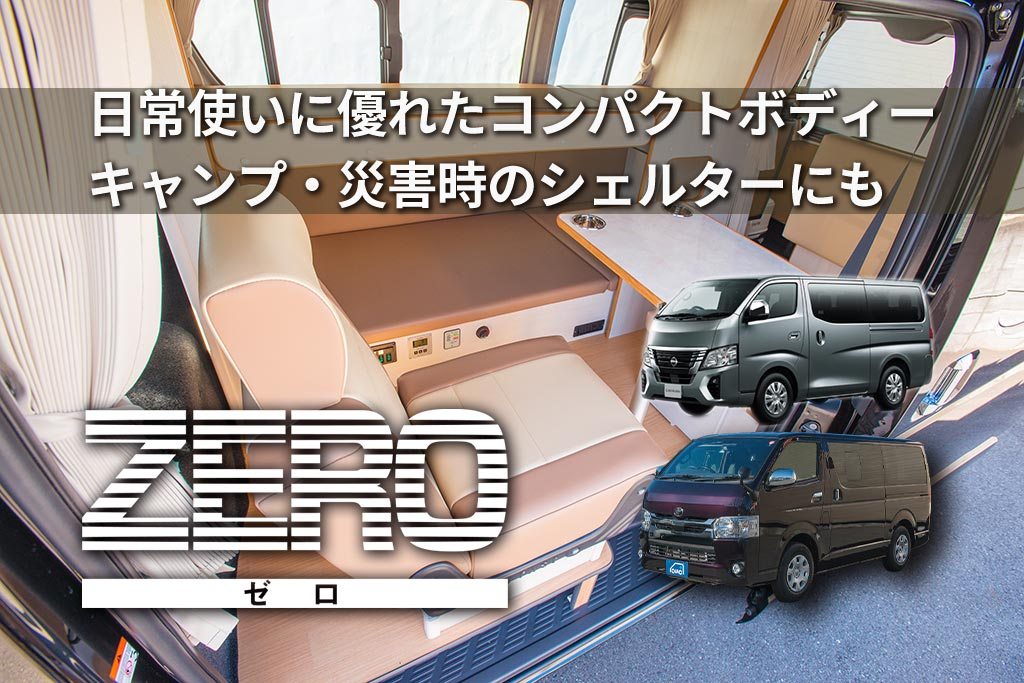キャラバンベースでゼロをリニューアル。立体駐車場にも入るコンパクトなキャンピングカーです。