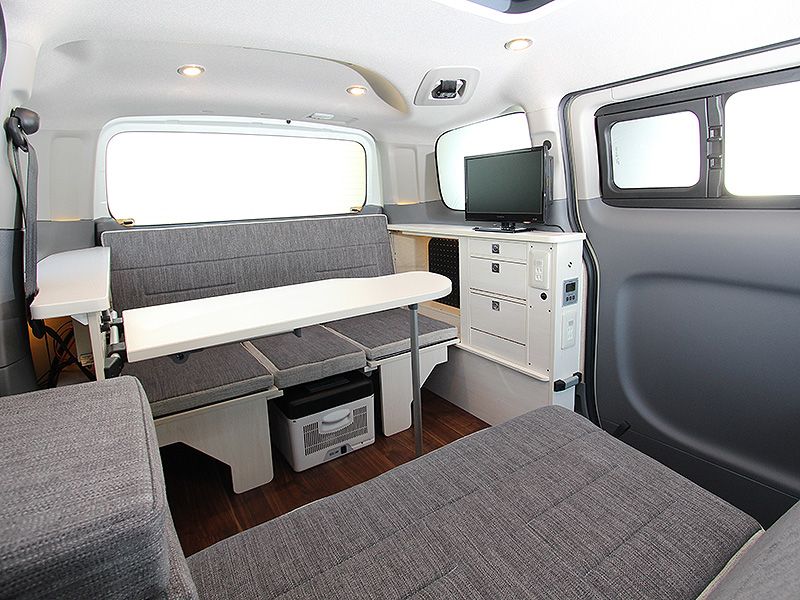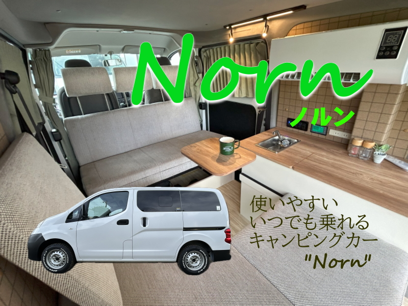 NV200ベースのコンパクトキャンピングカー2025年デビュー!ご家族と、お仲間と、ワンちゃん・ネコちゃんとご一緒の旅にもちょうどいい、使いやすいレイアウトの1台です。お選びいただけるカーテン・シート生地でお好みのインテリアに。オプションも多数ご用意しております!