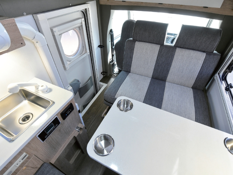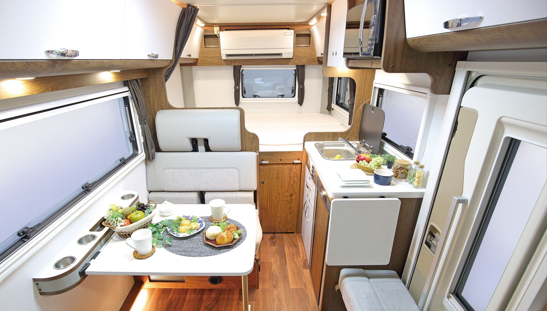 車幅を1950mmに抑え全長を4850mmとして移動を快適にし、コンパクトキャブコンには無かったハイクラスな装備を実現。