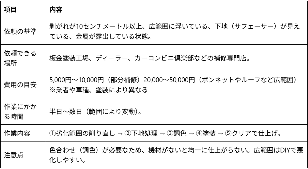 無理に作業を進めると、剥がれがさらに広がったり色ムラが出るなど、かえって修理費用が高くなるケースも少なくありません。