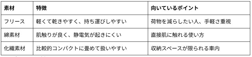 厚みについては、「ほどほど」がポイントです。分厚すぎると収納スペースを圧迫しますし、薄すぎると寒さ対策として物足りなく感じることもあります。使う季節を想定して選ぶと失敗しにくいですね。