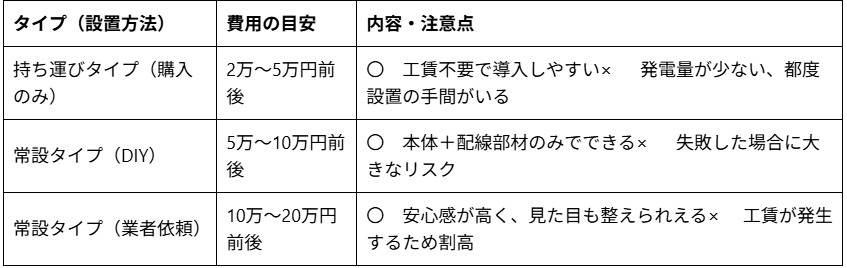 一方、常設タイプはDIYか業者依頼かで費用に差が出ます。
