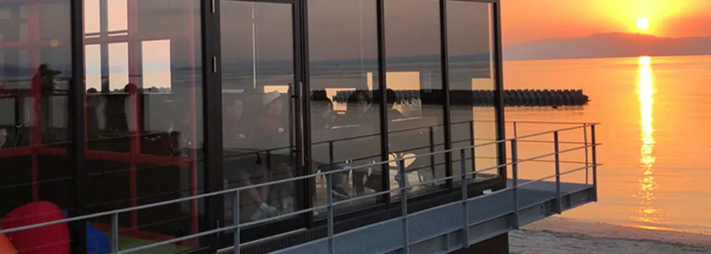 目の前に広がる角力灘に沈む夕陽を望める立地が特徴で、「夕陽を見に行くだけでも価値がある場所」として知られています。