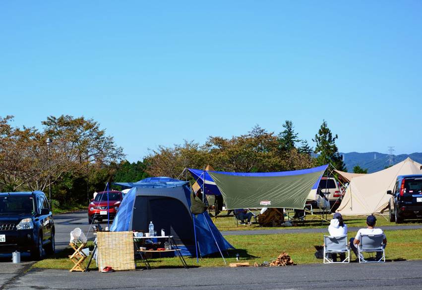 芝生のサイトは車の乗り入れが可能で、車中泊やファミリーキャンプに適しています。