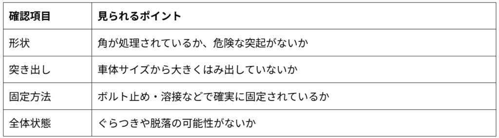しし狩りバンパーが車検に通るかどうかは、取り付け状態が保安基準に適合しているかで判断されます。