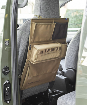 シートの背面に取り付けて使う収納タイプの車内グッズです。