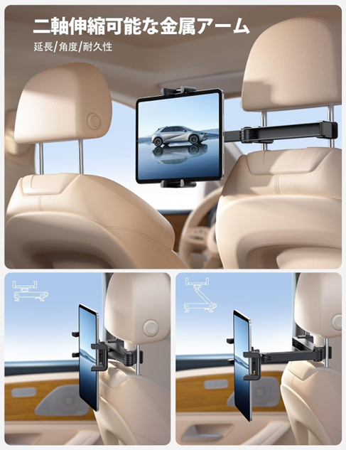 ポケット収納も付いているため、小物やタブレットなどをまとめて整理できるのも便利なポイントです。長距離ドライブや家族での移動など、後部座席をよく使う方に向いています。