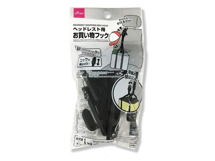 とにかく安く試してみたい方におすすめなのが、ダイソーのヘッドレスト用お買い物フックです。