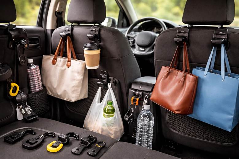 そんなときに便利なのが、シートやヘッドレストに取り付けて使える「車の荷物掛けグッズ」です。フック付きのものであれば、バッグや袋を引っ掛けておけるため、車内が散らかりにくくなります。