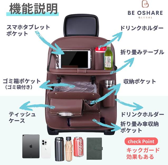多機能シートバックポケット|テーブル付きで後部座席を快適に