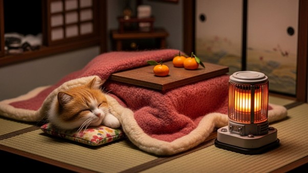 猫がくつろぐスペースに毛布やブランケットを敷くことで、冷えを軽減できます。また、ペット用ヒーターマットを使えば、猫が暖かく過ごせるスペースを作ることができます。最近はUSB電源で使える小型ヒーターマットもあり、モバイルバッテリーやポータブル電源で使用できるため、キャンピングカーや車中泊でも取り入れやすい暖房アイテムです。