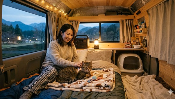 近年、猫と一緒に旅を楽しむ飼い主が増え、車中泊で自由気ままに過ごすスタイルも注目されています。キャンピングカーや車中泊仕様の軽自動車なら、猫用トイレや寝床を設置しやすく、快適な移動が可能です。